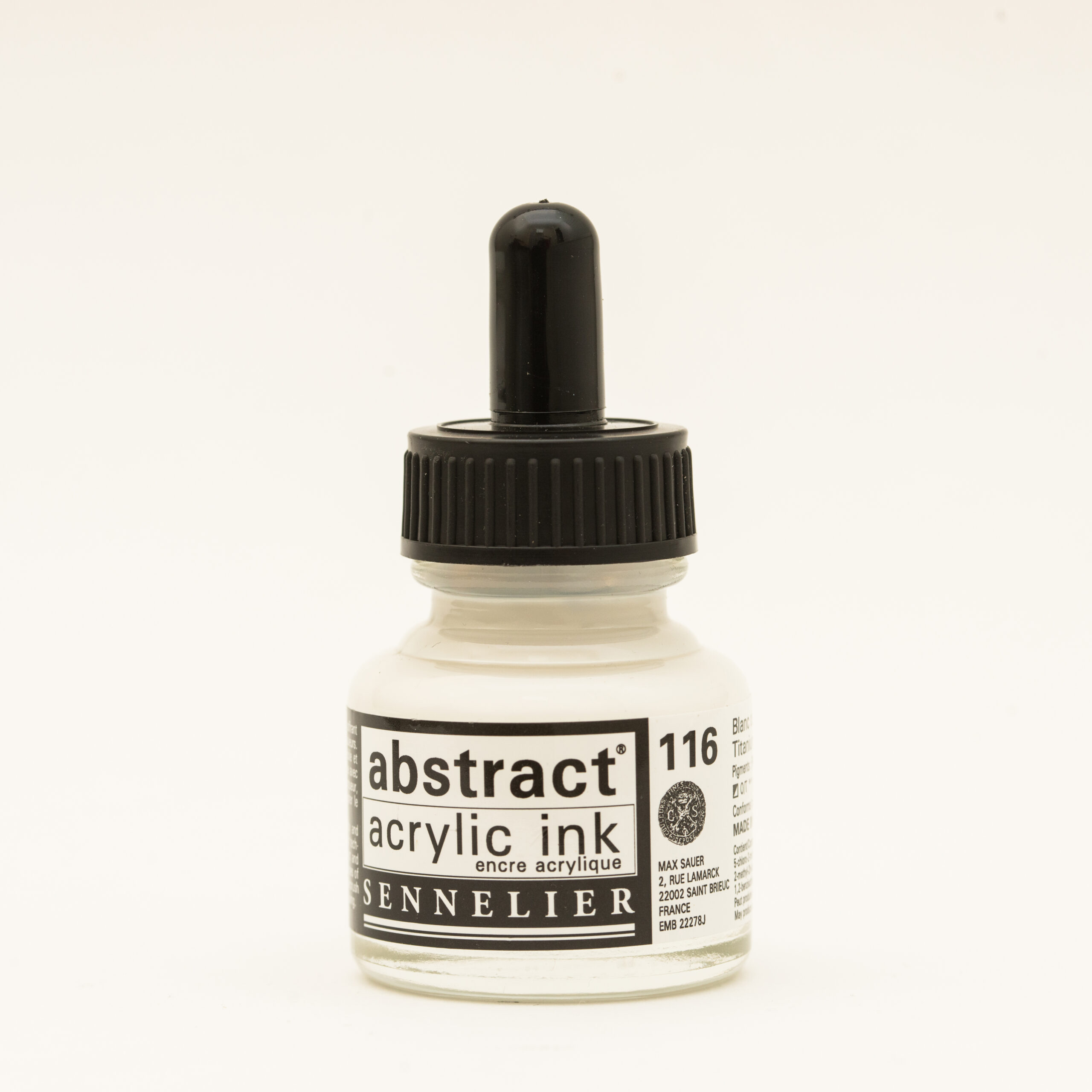 Sennelier Abstract Akrylblekk i fargen Titanium White er et flytende, høypigmentert akrylblekk med en kraftig, dekkende hvitfarge. Denne nyansen er ideell for å lysne andre farger, skape kontraster, legge høylys eller arbeide med rene, grafiske uttrykk.