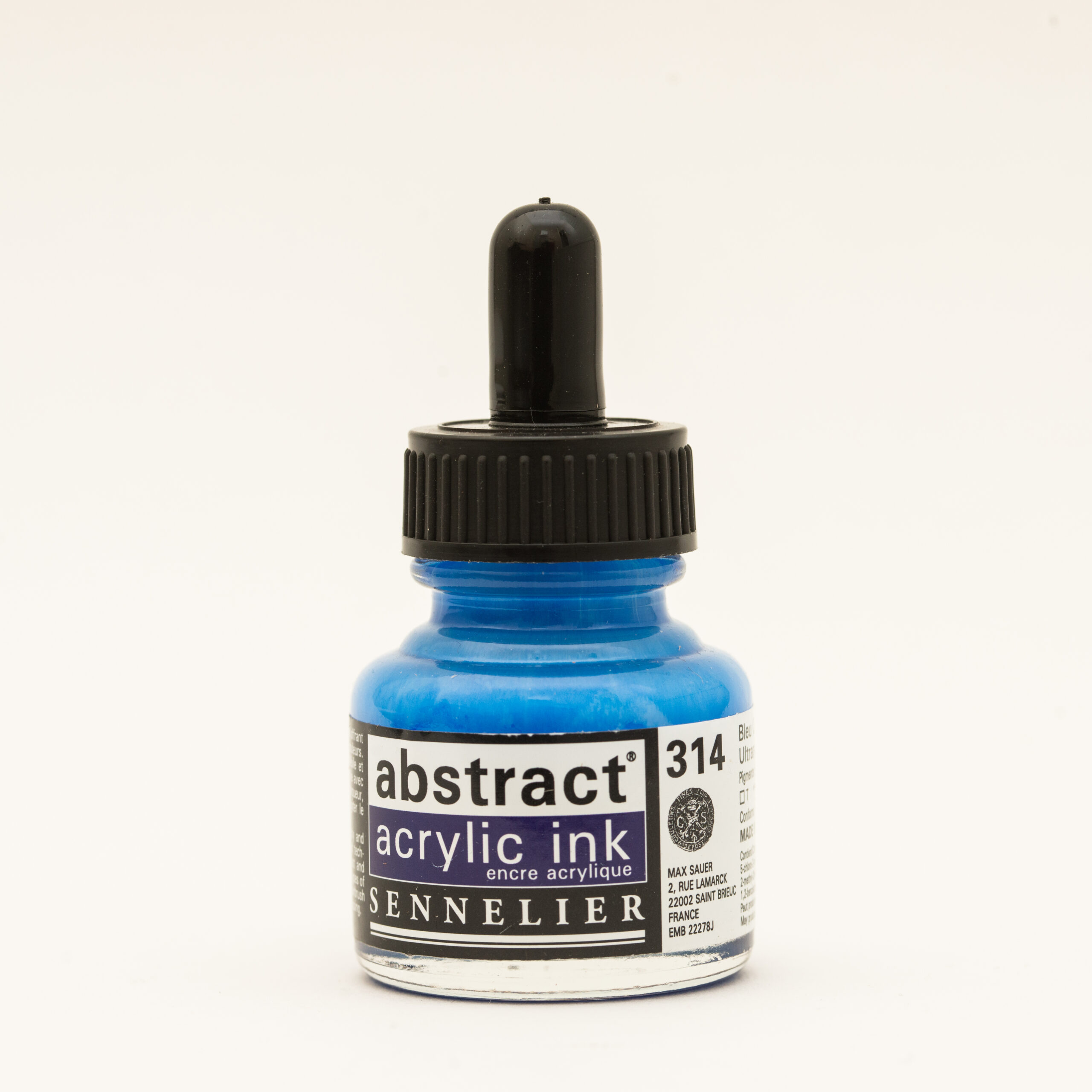 Sennelier Abstract Akrylblekk i fargen Ultramarine Blue er et flytende, høypigmentert akrylblekk i en klar, dyp blåfarge. Fargen gir intense, levende blåtoner og er ideell til himmel, sjø, grafiske detaljer, valørbygging og lagdeling i både figurative og abstrakte kunstverk.