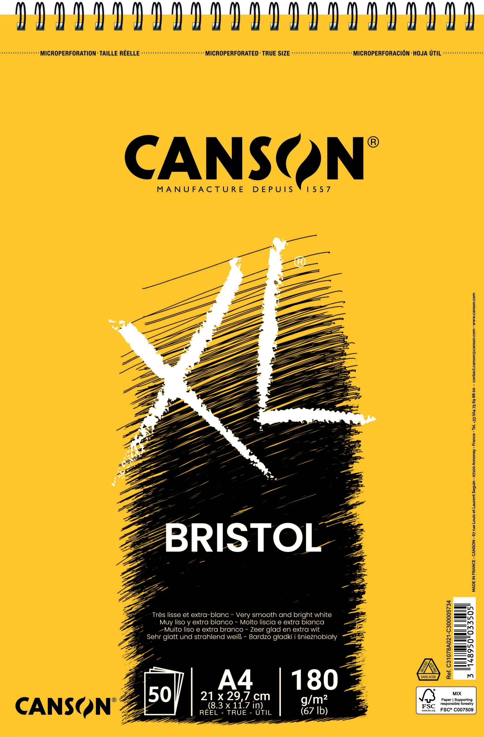 Canson XL Bristol er en ekstra hvit og silkeglatt tegneblokk med satengfinish, utviklet for presise tegninger og profesjonelle illustrasjoner. Det glatte Bristol-papiret gir skarpe linjer og en jevn overflate som passer perfekt til detaljarbeid med blyant, penn og tusj.