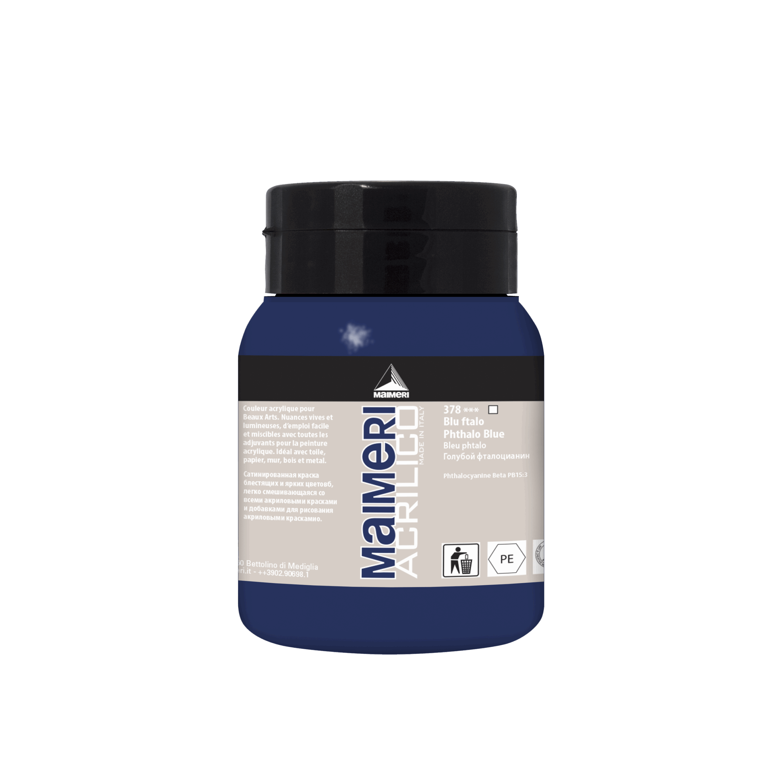 Maimeri Acrilico Phthalo Blue 500 ml er en høykvalitets akrylmaling utviklet for kunststudenter, profesjonelle kunstnere og seriøse amatører. Fargen Phthalo Blue er gjennomsiktig og gir intense, dype blåtoner med maksimal lysbestandighet, perfekt for detaljer, større flater og lagdeling i malerier.