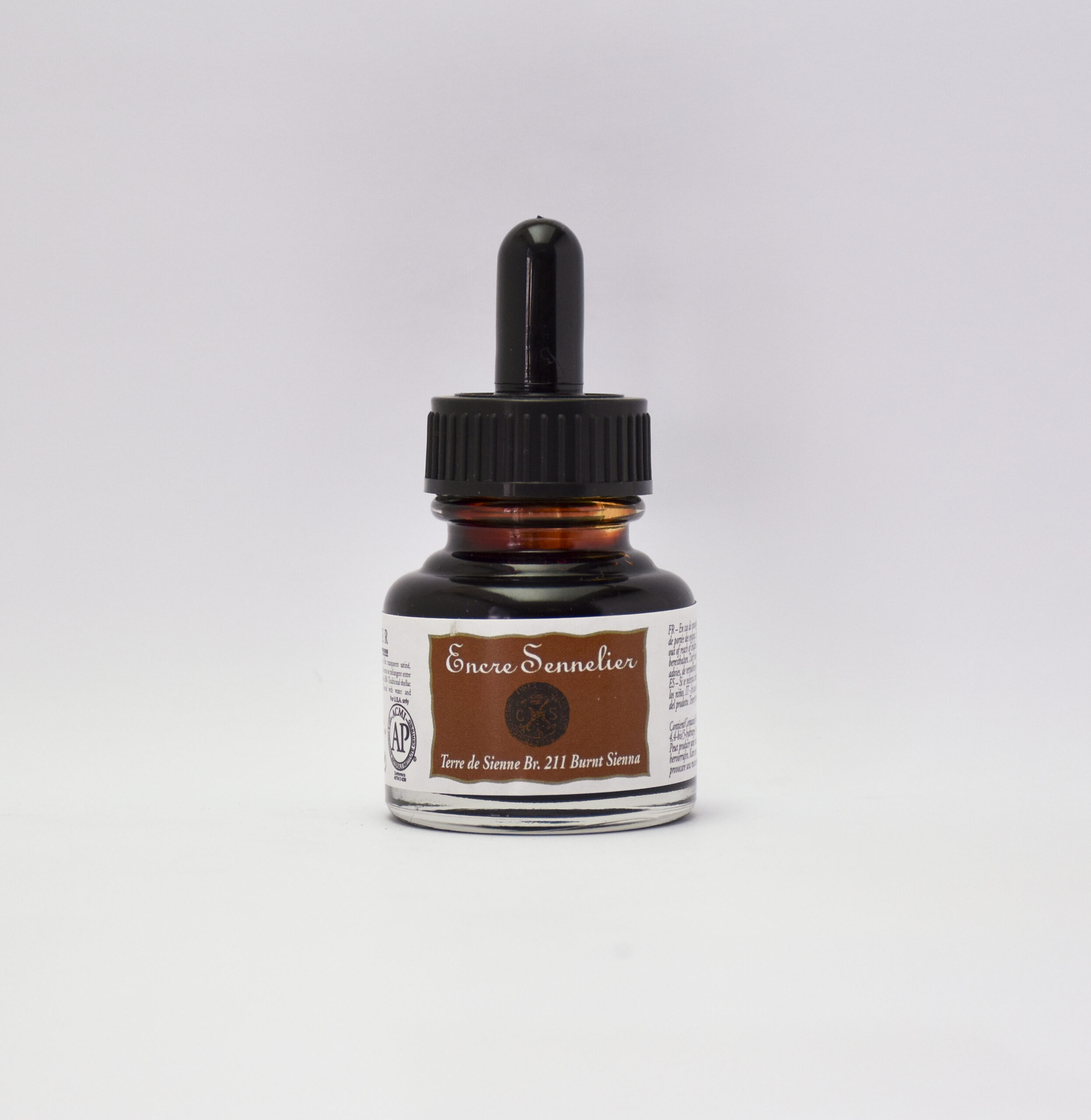 Sennelier Blekk 30 ml Burnt Sienna gir kunstnere et rikt, varmt brunfarget blekk med høy pigmentering. Flaska inneholder 30 ml og passer perfekt til tegning, kalligrafi og illustrasjon.